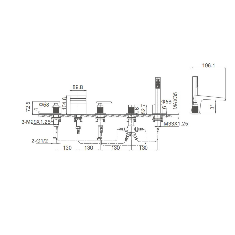 5-hole rim-mounted bath mixer