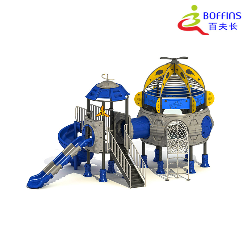 This Stellar Dome Kids Outdoor Playground Set is a whimsical, space-efficient recreational solution tailored for children aged 3 to 9, blending physical activity with cosmic imagination. Measuring 800480420cm, its compact layout fits perfectly in small community parks, residential backyards, and preschool outdoor spaces—while still offering room for multiple kids to play collaboratively. Built for long-lasting outdoor use, the set features a robust, weather-resistant frame paired with smooth, child-safe materials that withstand sun, light rain, and frequent play. Its bold blue, gray, and yellow color scheme, plus stellar details (like a dome-shaped play hub, winding slides, netted climbing sections, and star accents), evokes a sense of galactic adventure, encouraging kids to pretend they’re exploring a space station while they climb, slide, and interact. Safety is a core design priority: all edges are rounded to minimize injury risks, climbing areas include secure handholds for ste…