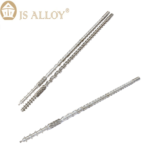 Topic: Supply bimetal twin screw and barrel from china-JS ALLOY factory Product Description Description: 1) Name: Bimetallic Conial Twin Screw Barrel 2) Base Material: 38CrMoAlA 3) Treatment: Bimetallic and Nitriding and Hardening & Tempering 4) Delivery Time: Around 20 days after confirmed with buyer 5) Guarantee time: One year 6) Material Application: General Plastics ABS,PA,PC,PE,PET,PP,PS,EVA,PU,PVC,U-PVC,etc PA + GF(Glass Fiber) Flame-resistant Reinforced Plastics Modified Engineering Plastics All kinds of Mixed Recycled Material(in Scrap or Granule),etc…