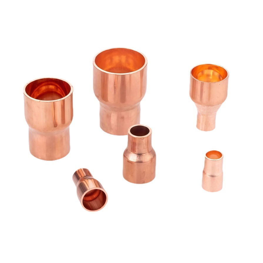Copper reducer socket-welded reducing pipe straight fitting is specially designed for refrigeration pipelines such as air conditioners and cold storage. The low-temperature performance of copper material is outstanding, and it can still maintain structural stability in ultra-low temperature environments, and will not become brittle and crack due to low temperature, adapting to the harsh working conditions of cold storage. The welded reducing connection method forms a firm combination between the joint and the copper pipe, with strong bearing capacity, which can cope with the pressure changes and vibration of the pipeline system. The straight pipe joint design simplifies the installation process, reduces the number of accessories, and reduces the risk of leakage. At the same time, the antibacterial property of copper can keep the inside of the pipeline clean, avoiding microbial contamination of the refrigerant and affecting the refrigeration effect. From the diameter change of the con…