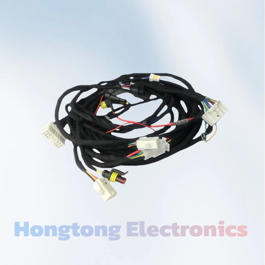 Automotive wiring harness and door wiring harness assembly are the core connection hubs of the vehicle's electrical system. The product adopts precision wire harness assembly technology, using high-purity oxygen-free copper as the wire core, matched with PVC insulation layer resistant to 150℃ high temperature, complying with IPC 620 electronic assembly wiring standards, and having both low-loss conduction and anti-aging performance. Among them, the door wiring harness assembly is specially designed for the door system, integrating signal transmission for window lifting, door lock control, rearview mirror adjustment and other functions. The wire harness connector adopts IP65 waterproof grade, which can resist rain splashes and humid environments to ensure stable response of door functions. The cable harness assembly adopts a modular layout, and the outer layer of the wiring loom is wrapped with flame-retardant braided sleeves to reduce friction loss and electromagnetic interference ca…