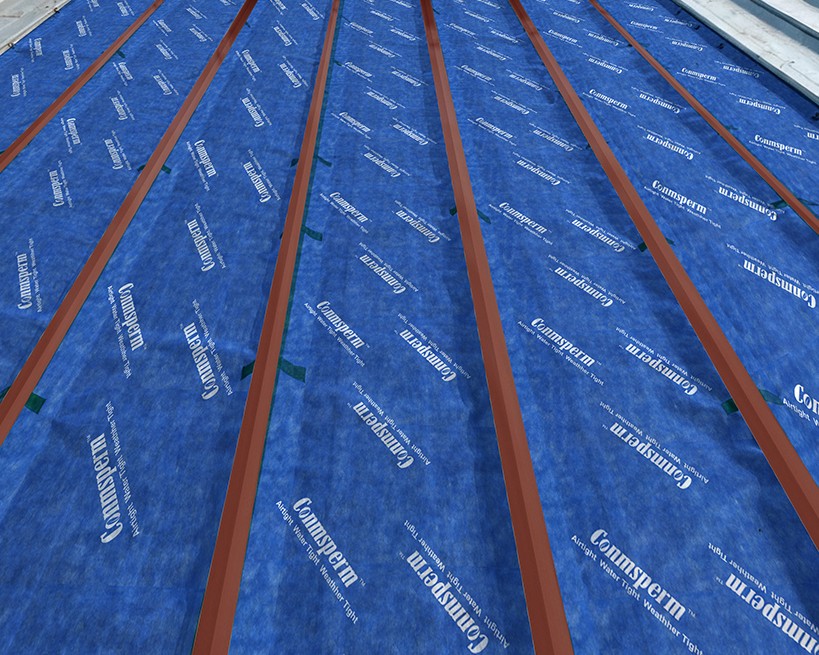 A heavy-duty lap-seal tape,red-and-black,delivers high initial tack and elevated peel strength, bonding instantly to air-barrier membranes, metal cladding, and all common substrates,delivers an airtight, watertight bond. The tape comprises anti-resistant multi-layer PO film、high-performance acrylic adhesive、reinforced polyester mesh and double-plastic single-silicon release paper. Product Applications Perform permanent airtight treatment on the lapped joints and penetrating parts of the airtight membrane. Engineered for sealing membrane laps on walls and roofs, as well as joints against slabs, studs, and other structural interfaces. Product Advantages • High and lasting adhesive strength. It contains no raw rubber, resin or solvent, and has the properties of anti-drying and anti-embrittlement. It can reliably absorb structural movements for a long time. • In contact with water or in a humid environment, the adhesive film can effectively resist the penetration of water molecu…