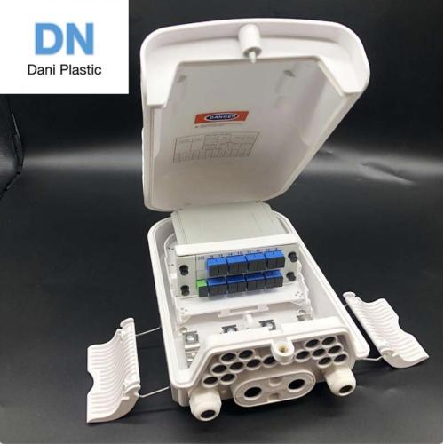 16Cores Outdoor FTTH Box The equipment is used as a termination point for the feeder cable to connect with drop cable in FTTx communication network system. The fiber splicing, splitting, distribution can be done in this box, and meanwhile it provides solid protection and management for the FTTx network building. Features 1). High quality PC, ABS, PPR material optional, can ensure harsh conditions such as vibration, impact, tensile cable distortion and strong temperature changes. 2). Solid structure, perfect outline, thunder, erosion and adding resistance. 3). Strong and reasonable structure with mechanical sealing structure, can be opened after sealing and cab be reused. 4). Well water and dust proof, unique grounding device to ensure the sealing performance, convenient for installation. 5). The splice closure has a wide application range, with good sealing performance, easy installation, produced with high strength engineering plastic housing, with a…