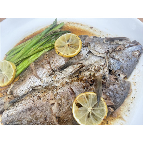 Frozen deep-fried open back black brown croaker is a dish made from a specific type of fish called croaker. The fish is first frozen and then deep-fried, resulting in a crispy and flavorful outer coating. The fish is typically left with an open back, allowing easy access to the meat inside. The color of the fish is black or brown, giving it a unique appearance. This dish is popular in some Asian cuisines and is often served with a side of dipping sauce or as a part of a seafood platter.