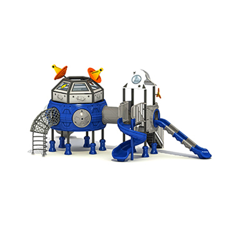 This Space Station Pod Kids Outdoor Playground Set is a compact, cosmic-inspired recreational solution designed for children aged 4 to 10, blending physical activity with interstellar imagination. Measuring 900620400cm, its space-efficient layout fits comfortably in small community parks, residential backyards, and elementary school recess areas—while accommodating multiple kids for collaborative play. Built for long-lasting outdoor use, the set features a robust, weather-resistant frame paired with smooth, child-safe materials that withstand sun, light rain, and frequent play. Its bold blue and gray color scheme, plus space-themed details (like satellite dishes, a pod-style play hub, winding slides, and star accents), evokes a sense of galactic exploration, encouraging kids to pretend they’re operating a space outpost while they climb, slide, and interact. Safety is embedded in every design choice: all edges are rounded to minimize injury risks, climbing areas include secure handh…