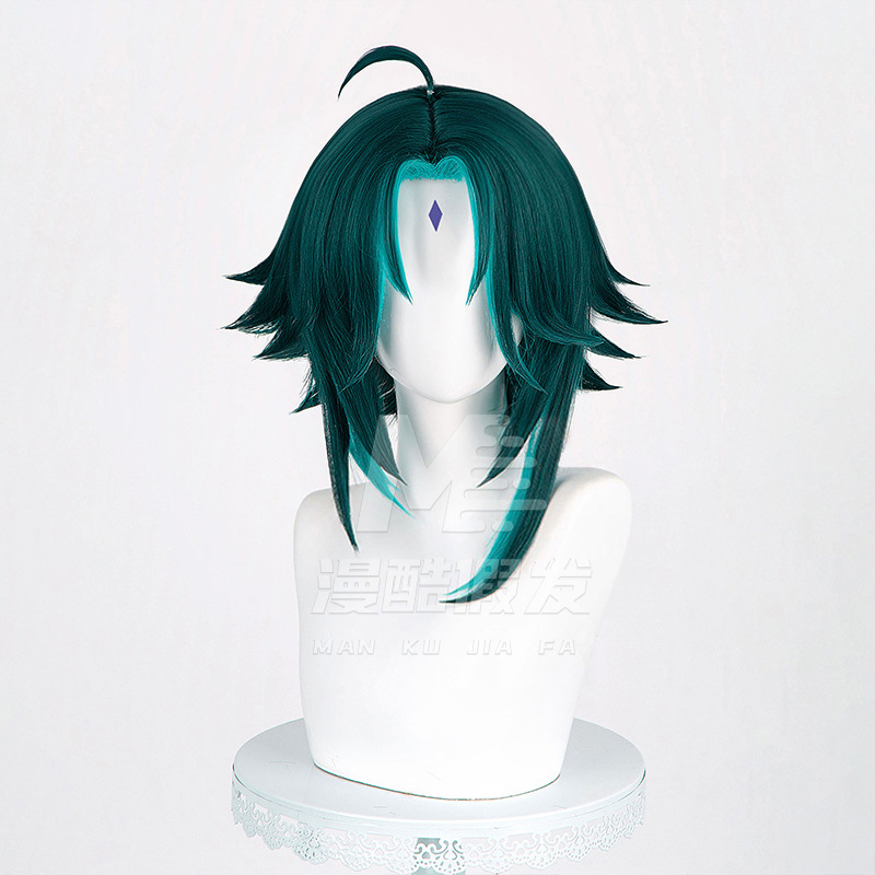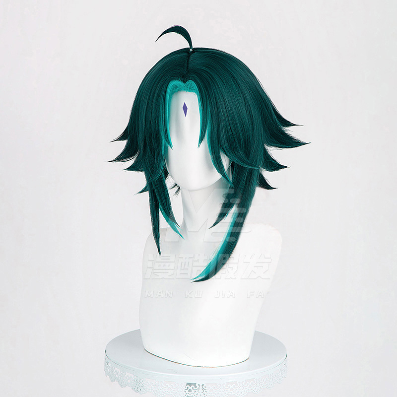Embody Genshin Impact’s iconic Yaksha Xiao with this precision-crafted cosplay wig, designed to capture his ethereal yet fierce essence. Design Faithfully replicates Xiao’s signature hairstyle: sleek, dark teal locks with striking neon green highlights, mirroring his in-game appearance. The short, layered cut with sharp, angular bangs frames the face, capturing his stoic demeanor. Every detail—from color gradient to texture—ensures authenticity, perfect for conventions, Genshin meetups, or themed shoots. Material Premium synthetic fibers mimic real hair’s softness and natural sheen, looking realistic under any light. Heat-resistant (safe for low-heat styling) to tweak bangs or strands. Tangle-free and shed-resistant, built to withstand repeated use without losing shape. Fit & Comfort Adjustable inner cap fits 54–60cm head circumferences. Breathable fabric prevents overheating during all-day wear, ideal for long conventions or photoshoots. Secure enough for dynamic poses, staying in…