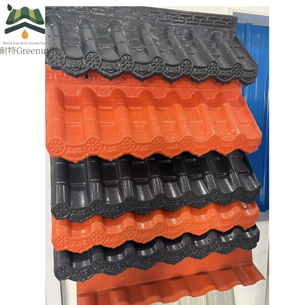 Product Description Size : Width /Effective Width 1100/1060mm Length:310mm ,390mm,520mm,630mm,710mm,870mm Wave Distance 240mm Usage: ancinet building,museums,scenic spots,etc Materail :ASA Synthetic Resin +pvc Other Relate Product Series Installing Requirement 1:Square pipe (60*mm*40mm*3m) or C-shaped steel (100mm*20mm*3mm) or rotted wood square (60*40mm) can be used as purlin bar. 2:The space between purlins bar is 660mm from top to top. 3:It should be installed in the opposite direction accordin g to the local wind direction and lap both sides of a wave at the same time when the main tile is installed. 4;Cutting the first section off and then installing it again, this way can be avoiding heap up thickness of tile when install the 135。 main ridge tile. 5:The joint should be sawed, and the tee should be installed after the installation of the positive ridge and diagonal ridge tile. 6:The fixing parts are special accessories. Using electric drill to…