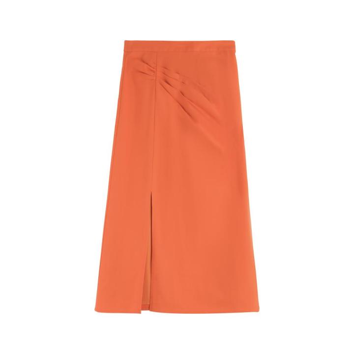 Pleated Pencil Skirt with a Side Slit