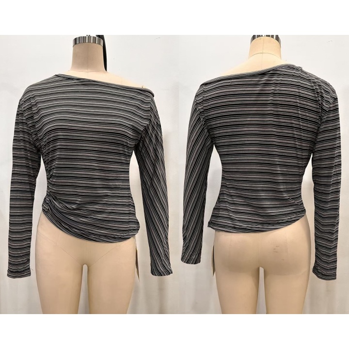 Women's Striped Top with One Shoulder Design