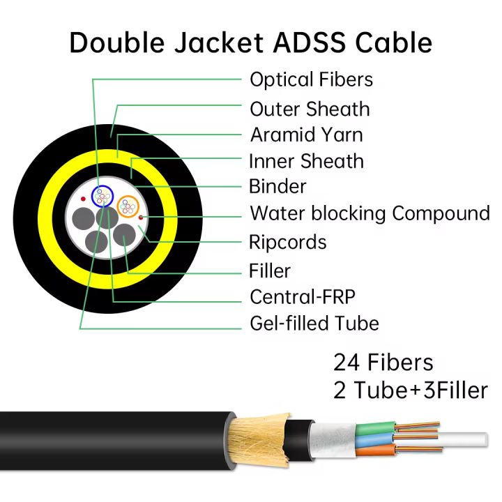 200m singlemode 24 core ADSS Fiber Optic Cable