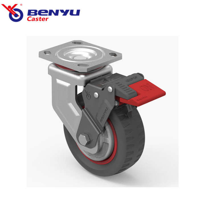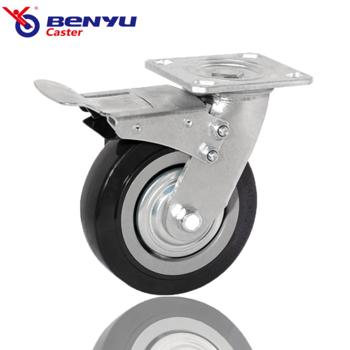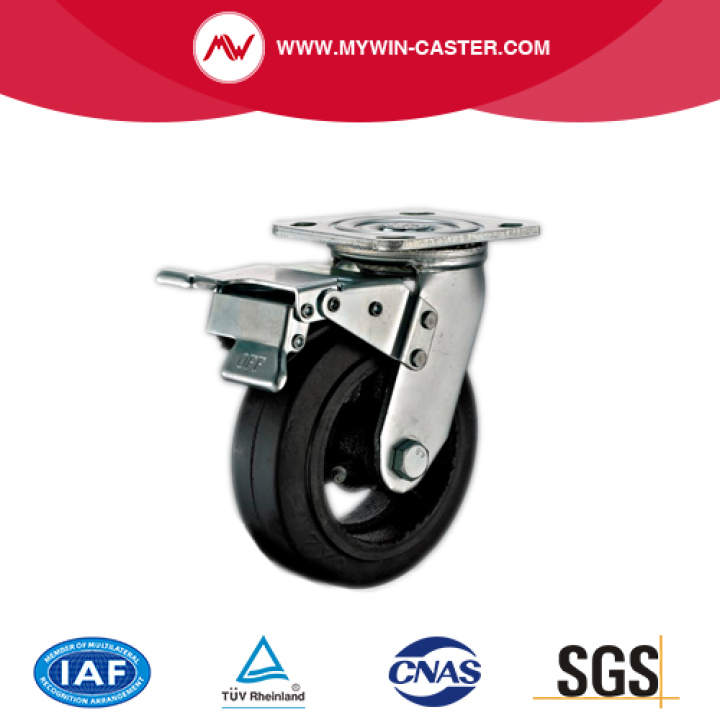 8'' Swivel Heavy Duty Black Rubber Industrial Caster with Iron Core With Brake