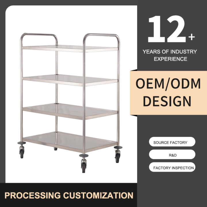 4-tier Stainless Steel Commercial Mobile Dining Trolley