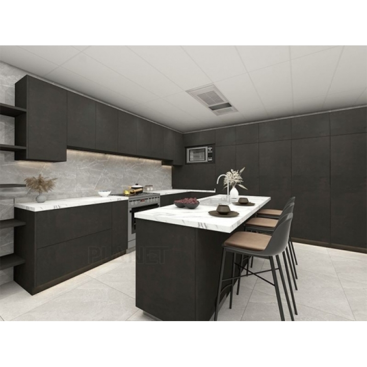 Black color matte lacquer modular kitchen cabinet set