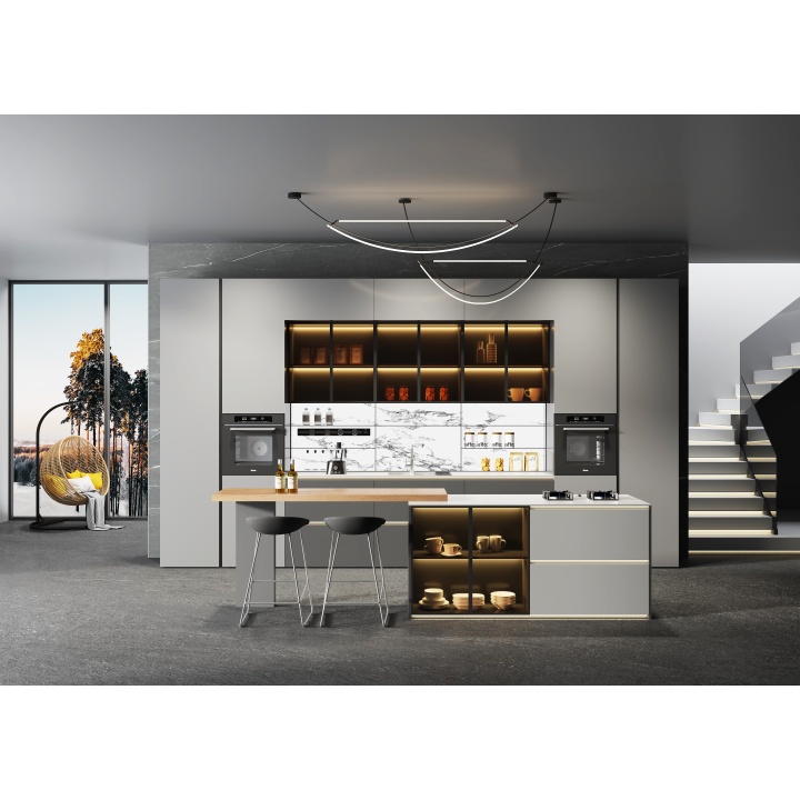 Luxury Solid Grey Wood Kitchen Cabinet With Pantry