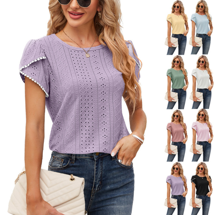 loose Ladies Tops women's t-shirts Hollowing out