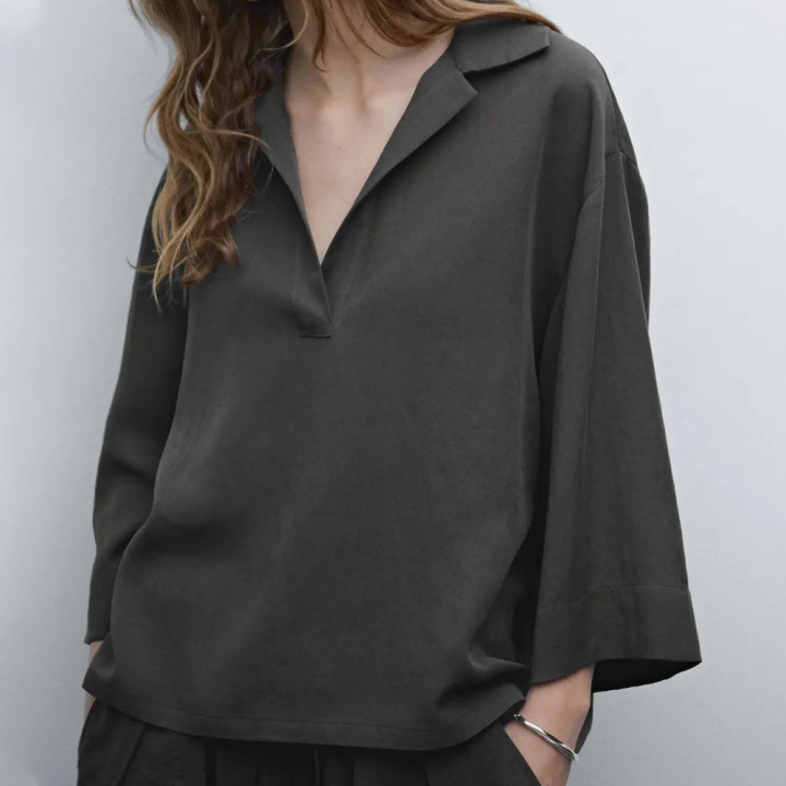 Women's casual commuting-style loose long-sleeved flowing polo-collared shirt