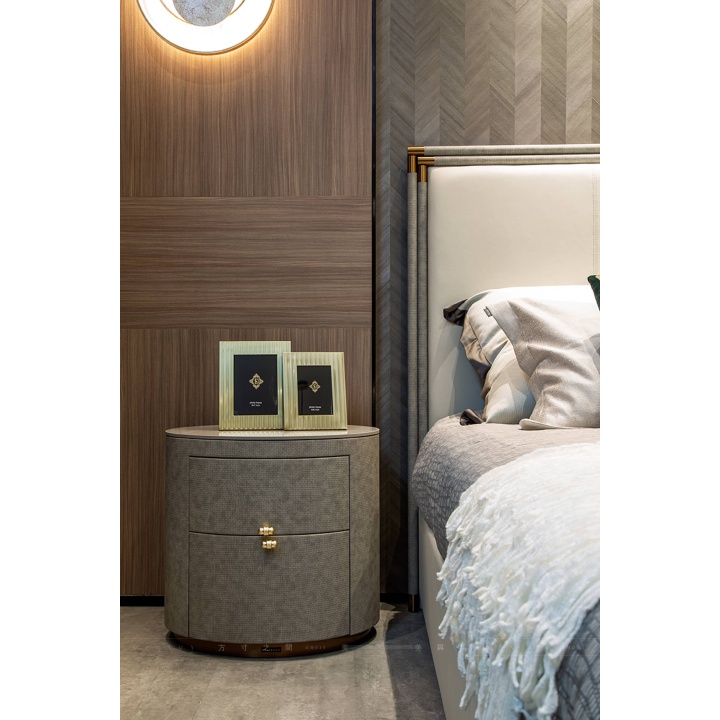 Solid wood bedside table Intelligent LED light Modern minimalist creative cabinet