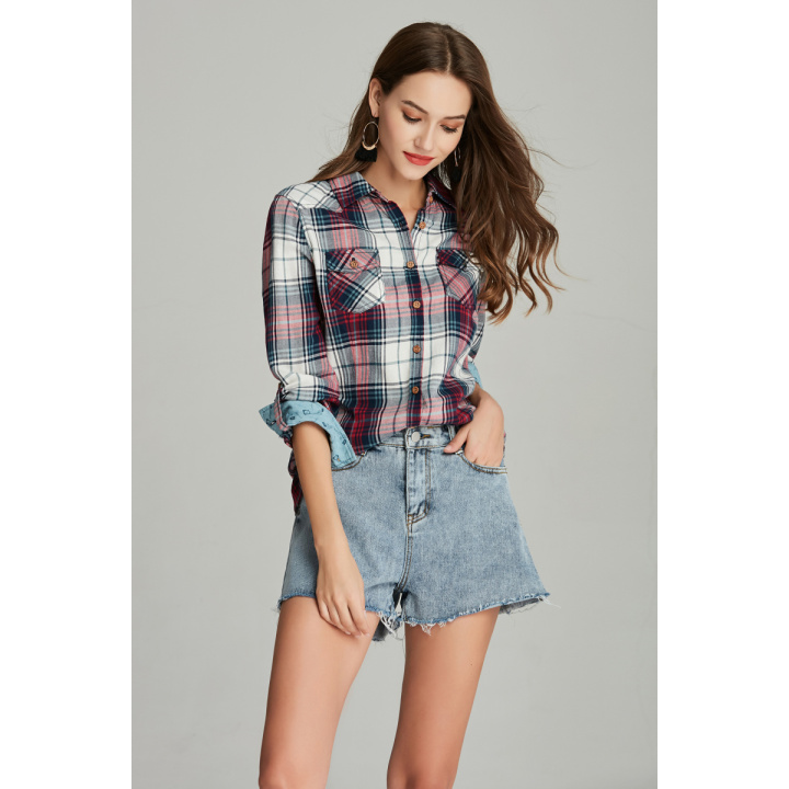 cotton check shirt plaid ladies shirt blouse