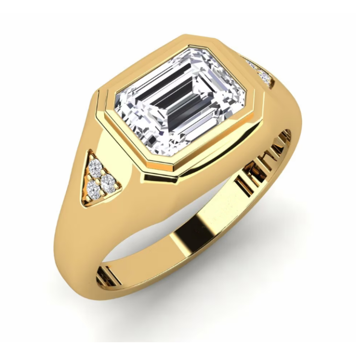 14K Gold Men's Ring with Lab-Grown Emerald Cut