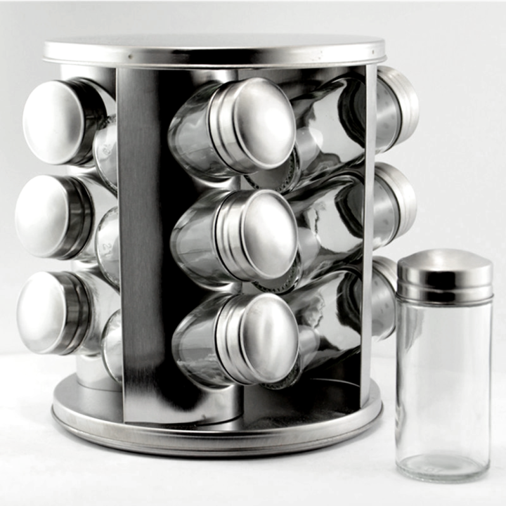 Kitchen Stainless Steel Revolving 12 Jars Countertop Rack
