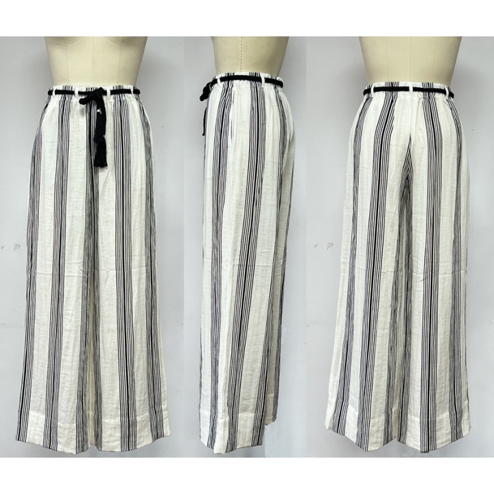 PRINTED WIDE LEG PANTS STRIPE PANTS CONTRAS BELT