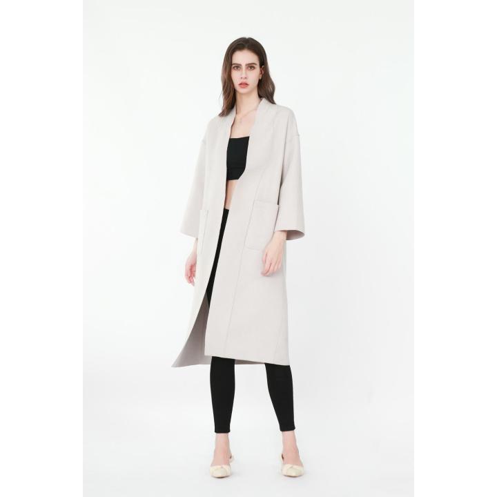 Three-quarter Sleeves Cardigan-style Woolen Coat