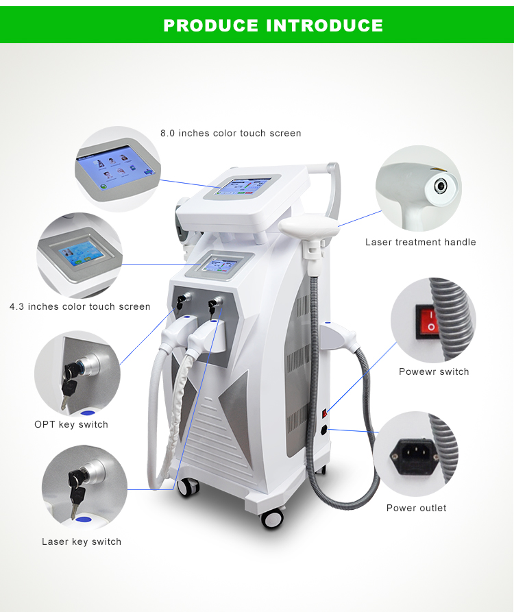 3 In 1 OPT + IPL+ Rf+ Nd YAG Permanent laser Tattoo Removal Skin Rejuvenation beauty equipment Laser Hair Removal Introduction: It combines with the functions of optical energy and electromagnetic waves.It adopts elective absorption of light,which could get different impedance between target tissue and abnormal skin.It could strengthen absorption of electromagnetic of target tissue in the condition of lower light energy. Main Function : 1.IPL Elight hair removal 2. Elight rf skin rejuvenation 3. Nd yag laser tattoo removal Our products include: Facial Machine, Slimming Machine,Hair Removal Machine, Tattoo Removal Machine, Portable Device,Vacuum Massage Machine,Meridian Instrument... Service Capabilities——How do we create value for you? ✅ Customized development Supports deep customization of appearance design, functional modules, and software UI (provides full-process services of 3D modeling → proofing → testing) Mature solution library optio…