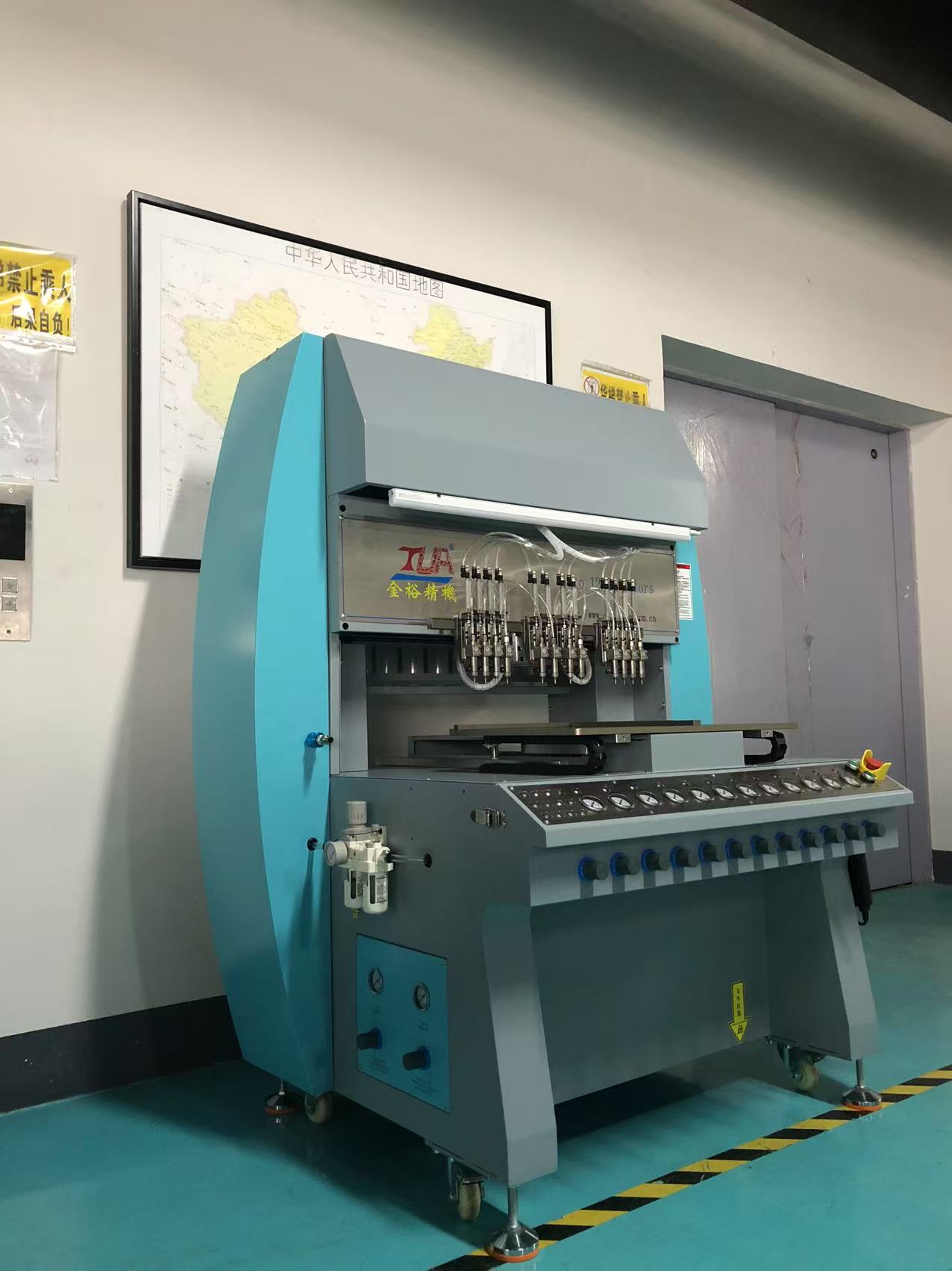 You probably mean the 12-color drop molding machine(dispensing machine), and its features are as follows: 1. Multi-color one-time forming: It can realize dispensing of 12 different colors at one time, meeting the production needs of complex patterns and multi-color products. It reduces the need for multiple operations in traditional multi-color drop molding, improving production efficiency and product quality consistency. 2. High degree of automation: It adopts full computerized automatic operation, with patterns that can be freely programmed and input. Equipped with a full servo system, it runs stably, with a dispensing accuracy of up to 0.001 grams and a fast production speed. It can precisely control the drop molding process, reduce manual operation errors, and improve production accuracy and efficiency. One machine can replace 3-4 traditional manual workers. 3. Strong applicability: By being installed with sliders, chutes, the first mounting frame and a workbench pla…