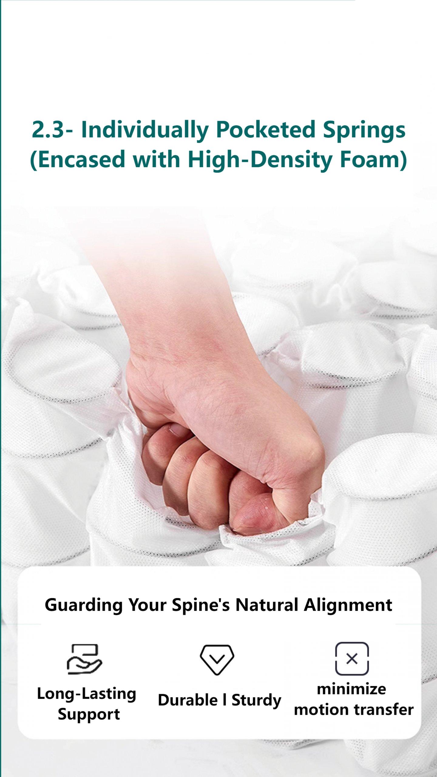 SereneHaven Orthopedic Firm Mattress with 2.3 Individually Pocketed Spring – Expert Support for Back Pain & Heavy Weight SereneHaven Firm Support Mattress: Targeted Spinal Alignment for Ultimate Comfort In the pursuit of health and wellness, quality sleep is non-negotiable. The SereneHaven Firm Mattress is scientifically designed to provide the firm stability and targeted support that your body deserves. Specifically engineered with advanced 2.3 Individually Pocketed Springs and premium high-density materials, this mattress is the ideal choice for those seeking relief from back pain, as well as heavy-weight individuals, the elderly, and growing teenagers. Core Technology: 2.3 Individually Pocketed Springs for Unmatched Support Our mattress's heart is its innovative spring system, designed for precision and durability. Guarding Your Spine’s Natural Alignment: The 2.3-gauge, adhesive-free pocketed springs work independently to contour to your body's curves, providing ta…