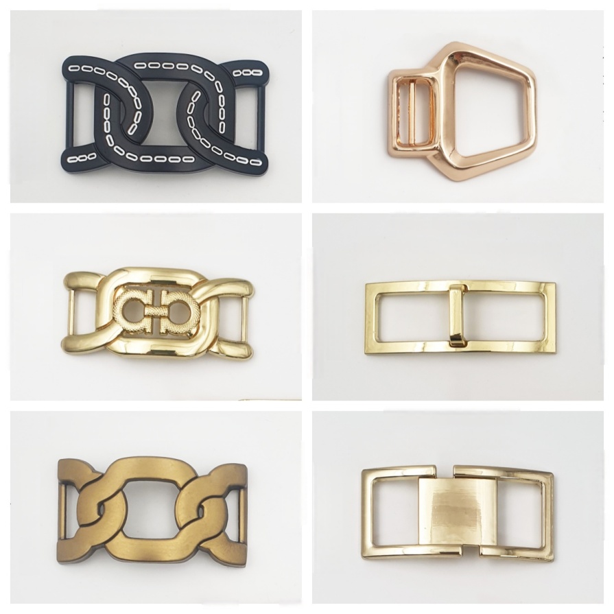 This series of shoe buckles is made of **zinc alloy** as the core material. It features three types of surface treatments: painted, smooth, and lettered. These buckles are suitable for various styles of footwear decoration. Each design has its own unique highlights: The painted buckles enhance visual depth through contrasting textures; the smooth buckles suit various shoe types with their simple contours; and the lettered buckles create distinctive style memory points with identifiable elements. The buckle is equipped with **iron foot pads**, which are stable to install and easy to operate. It not only supports the standardized decoration of mass-produced shoes, but also meets the personalized needs of handmade shoes and shoe modifications. The size can be customized or processed according to samples, and the specifications can be flexibly adjusted to match the decoration ratio of different shoe models. Whether it's enhancing the details of daily footwear or strengthening the style…