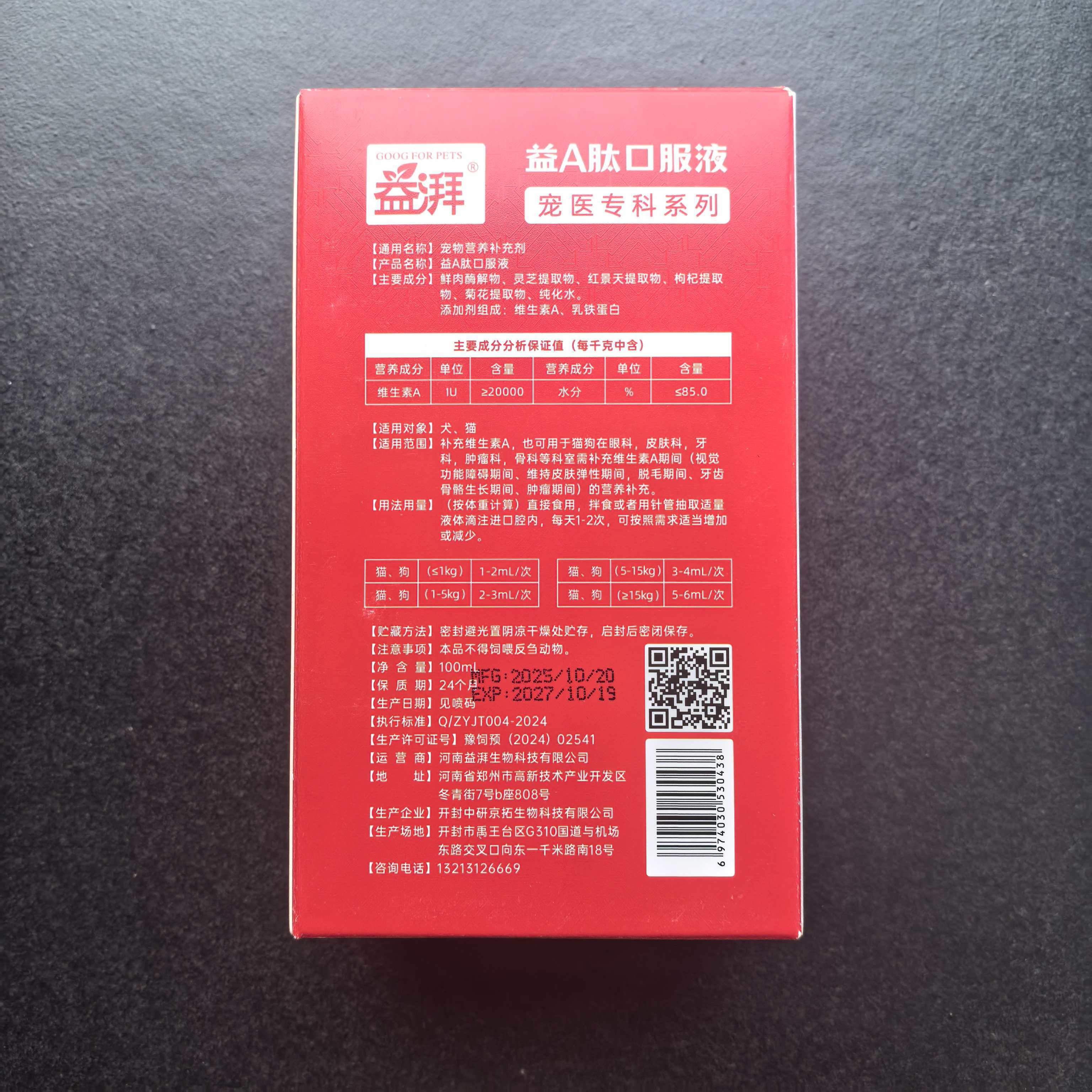 Yi A Peptide Oral Liquid - Skin Support with Vitamin A Yi A Peptide Oral Liquid is a premium Veterinary-Formulated Pet Vitamin specifically designed to address dermatological conditions in cats and dogs. As part of our Pet specialty oral vitamins collection, this product combines the therapeutic benefits of Vitamin A with traditional Chinese medicine to provide comprehensive Skin Health Supplements for Pets. Our Clinical-Strength Pet Multivitamin features a unique blend of fresh meat enzymolysate, Ganoderma lucidum (Reishi mushroom) extract, and essential nutrients that work synergistically to maintain skin elasticity, prevent hair loss, and support overall dermatological health in pets. Product Features & Advantages Advanced Formula with Reishi Mushroom & Vitamin A Our Reishi Mushroom with Vitamin A for Pets represents a breakthrough in veterinary dermatology supplements. The combination of USP-grade Vitamin A and premium Ganoderma lucidum extract creates a powerful Veter…