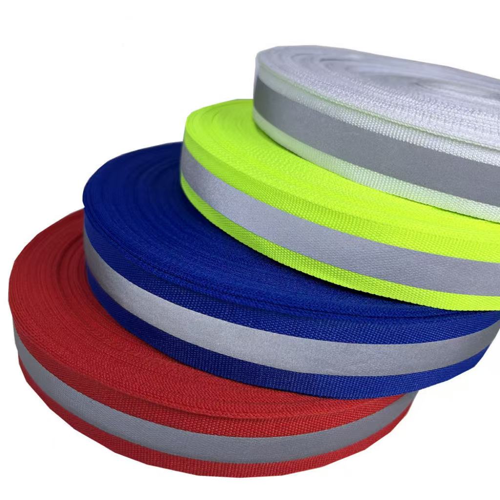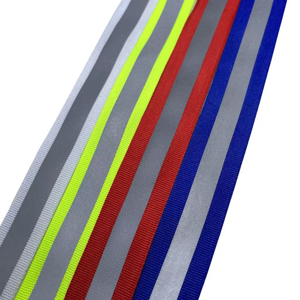 Product OverviewThis Reflective Webbing is a high-visibility accessory material, widely used in safety clothing, backpacks, and outdoor gear. It features bright reflective effects (visible in low-light environments) and durable weaving (wear-resistant, suitable for long-term use). Key Advantages • High reflectivity: Enhances night safety for workers, outdoor enthusiasts. • Multiple colors: Available in neon yellow, red, blue, etc., to match different product styles. • Strong applicability: Can be sewn on clothing straps, bag edges, or used as decorative safety details. Application ScenariosSafety workwear (e.g., firefighting/construction clothing), outdoor backpacks, pet collars, and sports equipment accessories. Primary Products: Reflective webbing, reflective elastic tape, reflective fabric, reflective film, reflective binding cord, flame-retardant reflective fabric