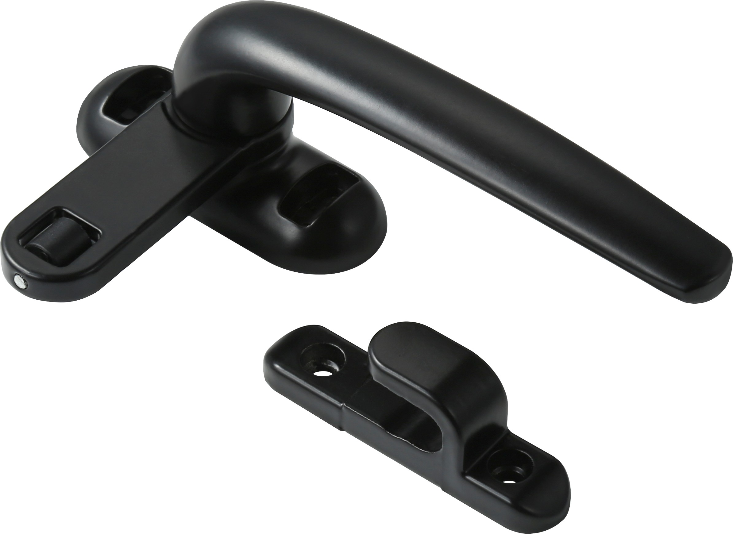 This single-point casement window handle set is engineered for outward-opening aluminum windows that require a simple, reliable closing solution. The gently curved lever provides a comfortable grip while maintaining a slim, unobtrusive appearance on the sash. Constructed from high-quality aluminum alloy with a powder-coated finish, the handle resists corrosion and everyday wear, making it suitable for residential and light commercial applications. The built-in rolling latch engages smoothly with the matching keeper to create a secure single locking point. This design is ideal for side-hung and top-hung window systems where surface-mounted hardware is preferred. The face-fix screw layout allows easy installation and retrofit on most standard aluminum window profiles. OEM services such as RAL color customization, logo marking, and personalized packaging are available for distributors, window manufacturers, and project buyers seeking consistent quality and scalable supply. Tech…