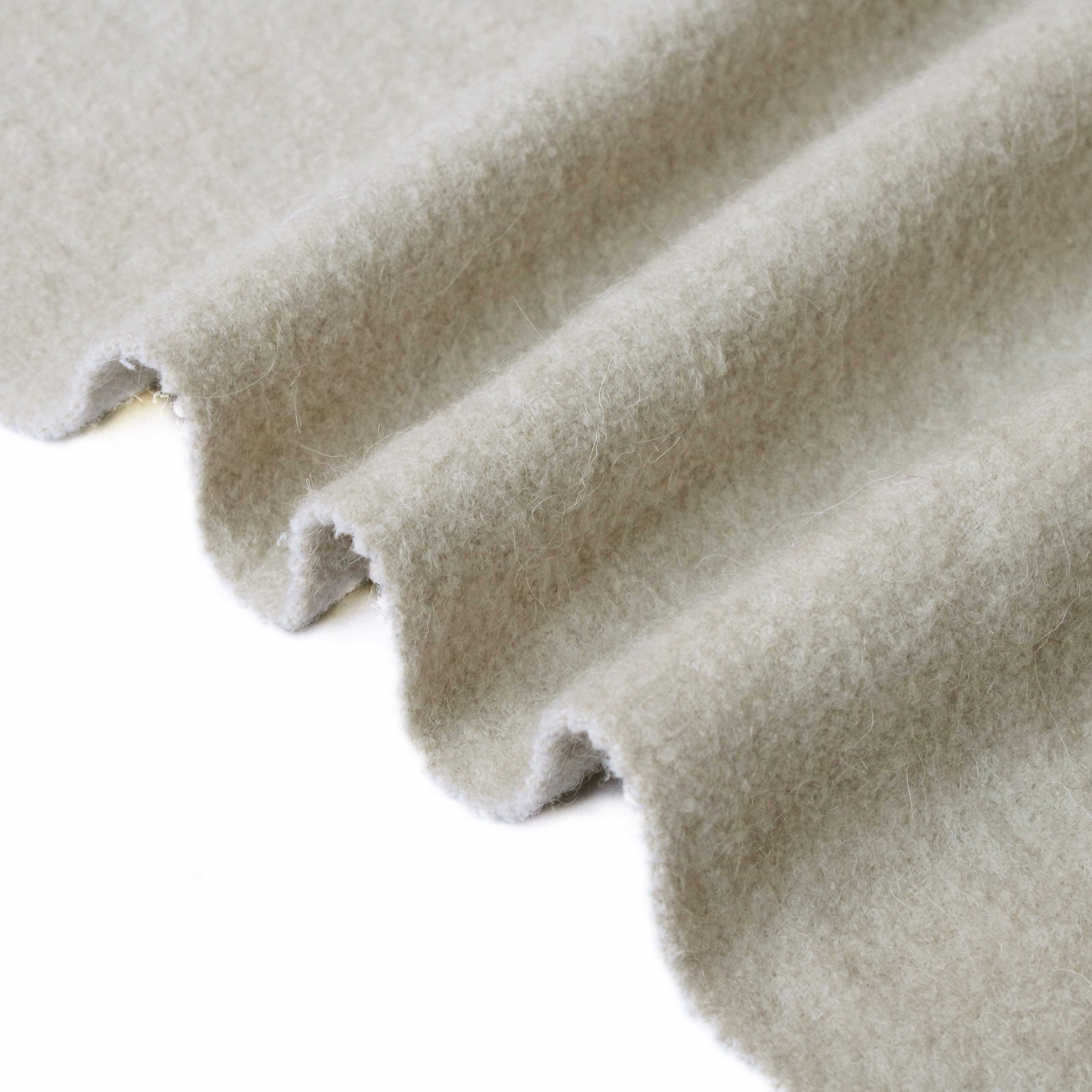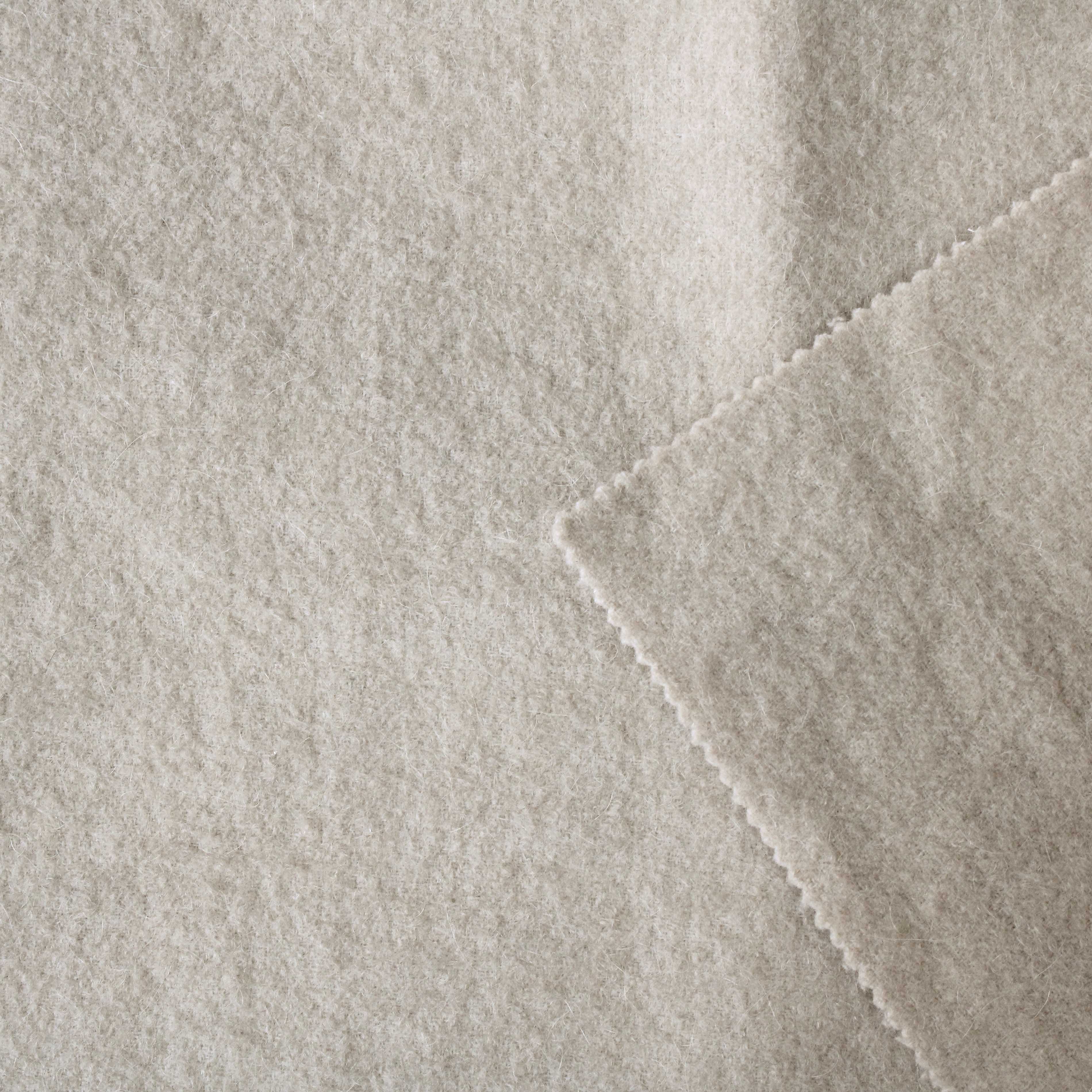 Woven Double-Faced Fabric: Elegant Lotus Pink Our high-quality woven double-faced fabric blends of Alpaca wool, the quality of Merino wool, and the sturdiness of nylon in a great mix. It weighs 460g per square meter – thick but soft, so it keeps good shape while being very comfortable. This makes it perfect for high-end fashion fabric clothing. Enhanced Durability The smart mix of natural fibers makes a strong, long-wearing material. It doesn’t pill or lose shape, so it works well year after year. Soft Lotus Pink Its soft pink-beige color is elegant and easy to use. It fits both classic and modern clothing lines, and is great for high-quality women overcoat men jacket. About Our Manufacturing We are a special textile factory that controls every step from picking fibers to making the final fabric. Our all-in-one production keeps quality steady for all our products – including this premium wool-alpaca blend, plus our many types like 100% wool, wool-mohair blend, and wool-polye…